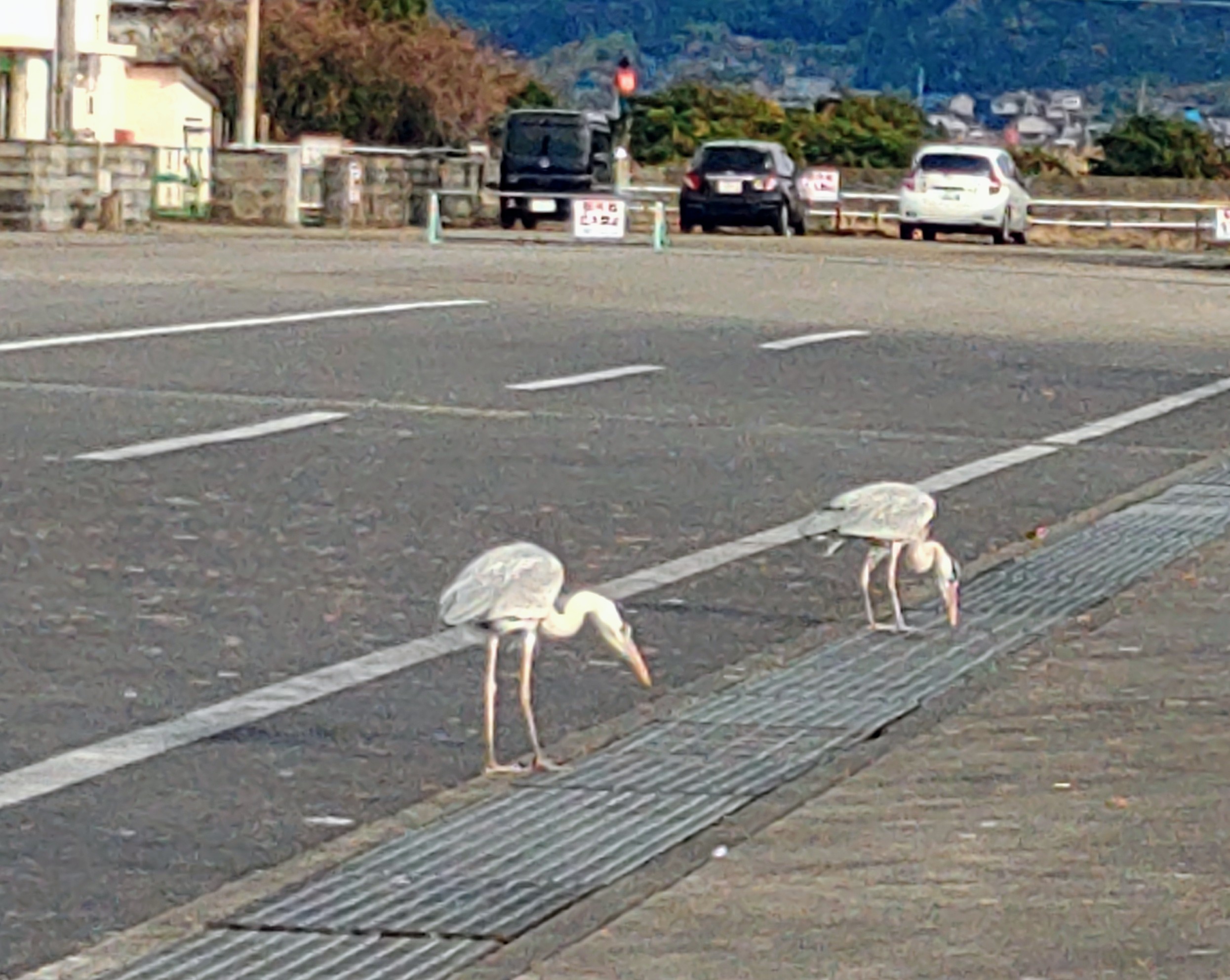 アオサギくん達の長いクチバシは特権ですね キツネが羨ましそうです